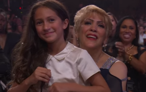 J.Lo foi homenageada na cerimónia com o prémio de carreira 'Michael Jackson Video Vanguard Award'; durante o discurso de agradecimento, a cantora e atriz começou por se emocionar ao falar dos filhos, os gémeos Max e Emme, de 10 anos, fruto do seu casamento com Marc Anthony.